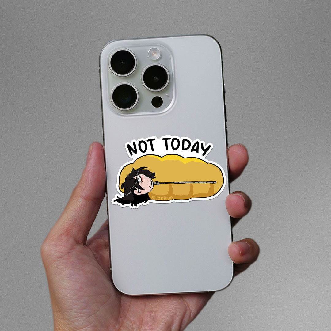 Not Today Sticker vinyl sticker, waterproof durable collectible sticker for laptop, phone, bottle, bike, notebook, helmet, and accessories.