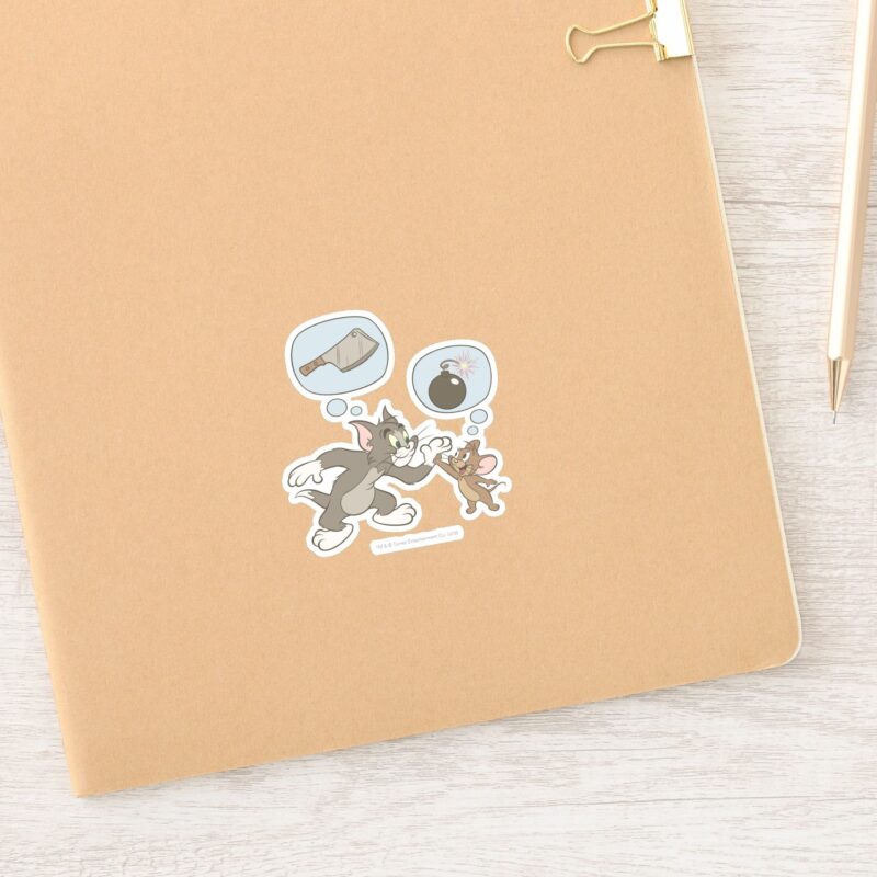 Tom And Jerry Evil Thoughts Sticker vinyl sticker, waterproof durable collectible sticker for laptop, phone, bottle, bike, notebook, helmet, and accessories.