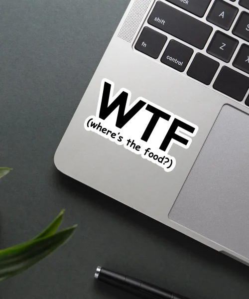 Wheres The Food Sticker vinyl sticker, waterproof durable collectible sticker for laptop, phone, bottle, bike, notebook, helmet, and accessories.