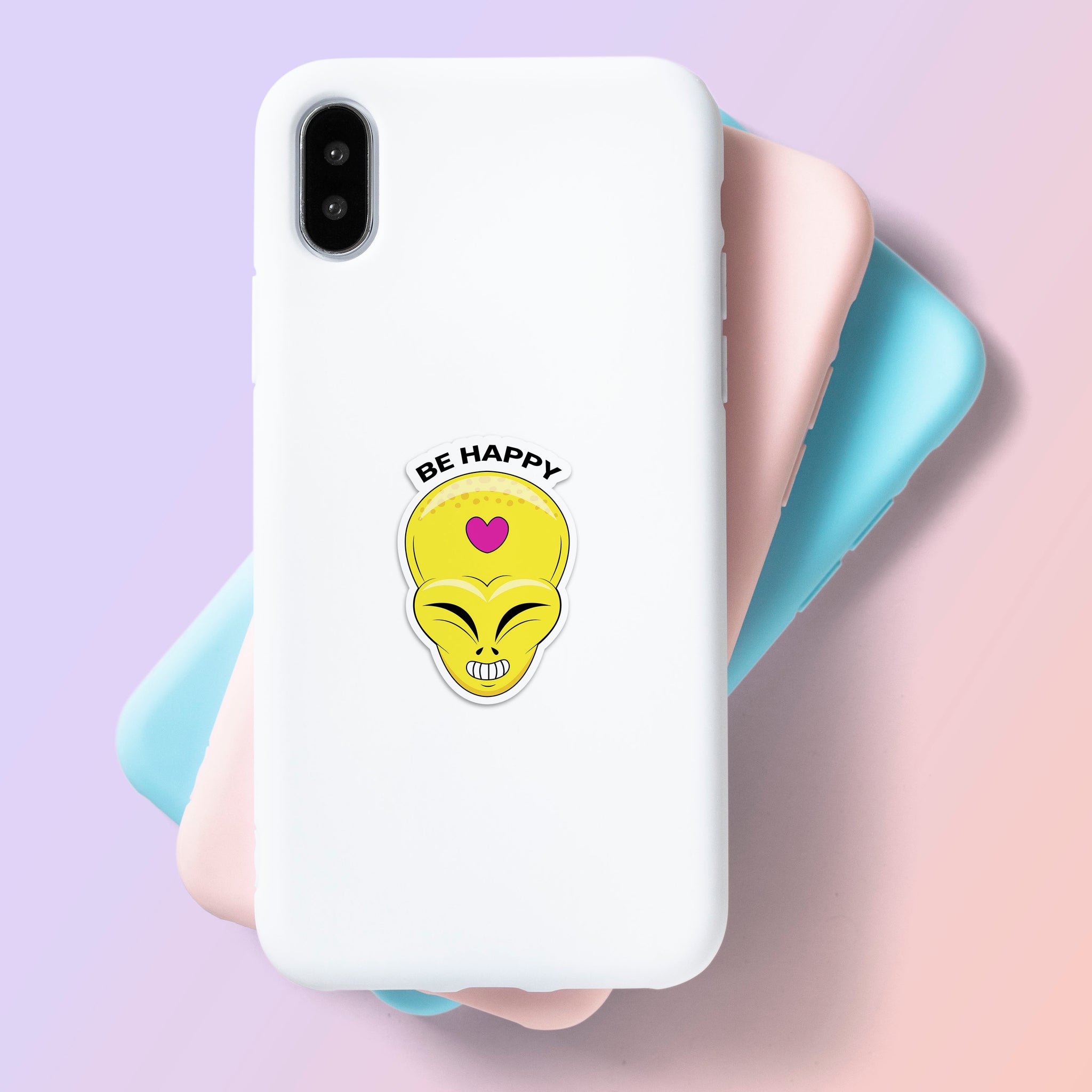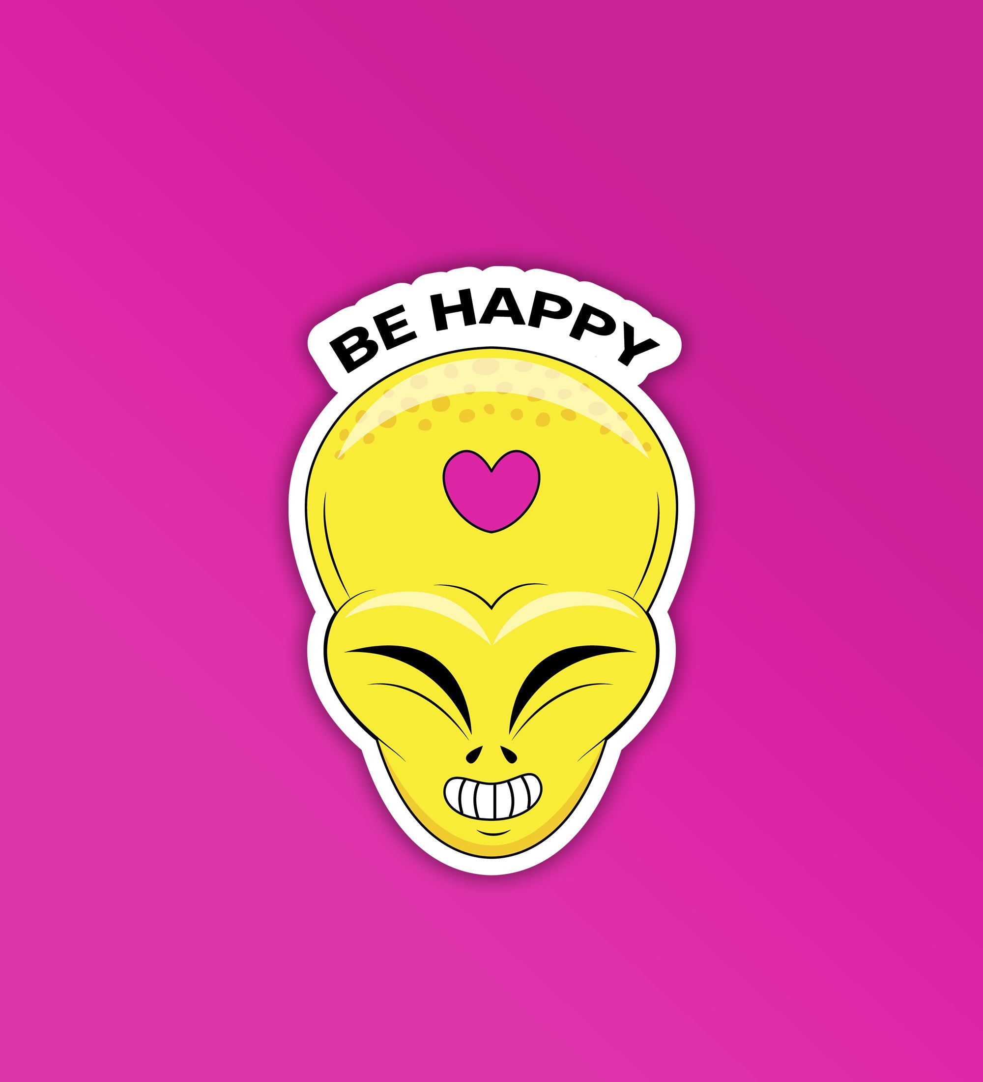 Be Happy Sticker vinyl sticker, waterproof durable collectible sticker for laptop, phone, bottle, bike, notebook, helmet, and accessories.