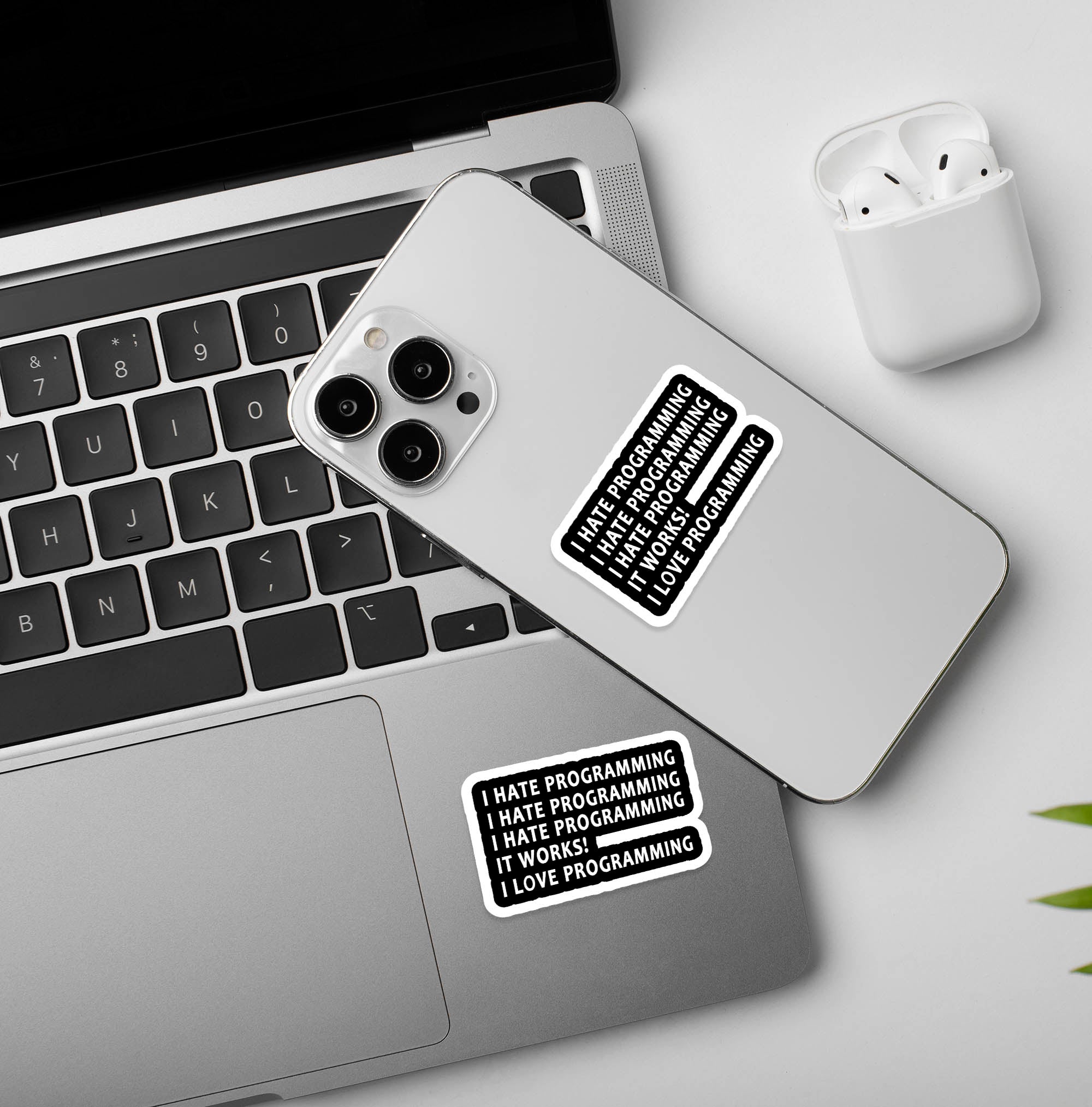 Hate Love Programming Programmer Coding Sticker vinyl sticker, waterproof durable collectible sticker for laptop, phone, bottle, bike, notebook, helmet, and accessories.