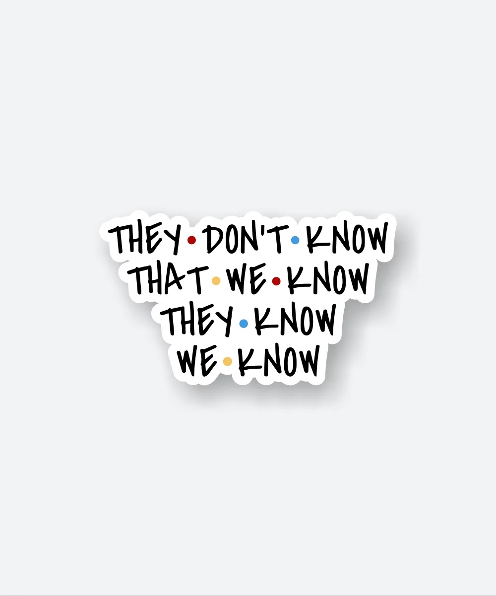 They Dont Know Sticker vinyl sticker, waterproof durable collectible sticker for laptop, phone, bottle, bike, notebook, helmet, and accessories.