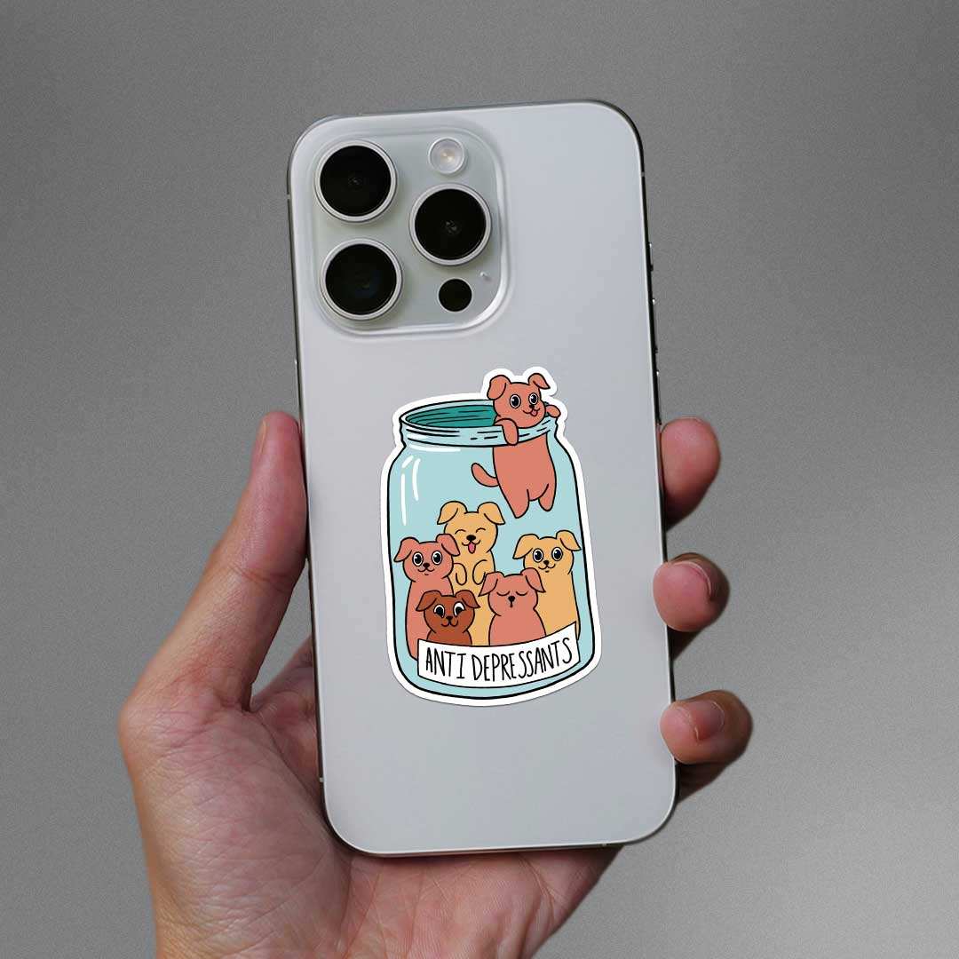 Anti Depressants Sticker vinyl sticker, waterproof durable collectible sticker for laptop, phone, bottle, bike, notebook, helmet, and accessories.