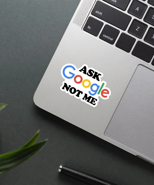 Ask Google Not Me Sticker vinyl sticker, waterproof durable collectible sticker for laptop, phone, bottle, bike, notebook, helmet, and accessories.