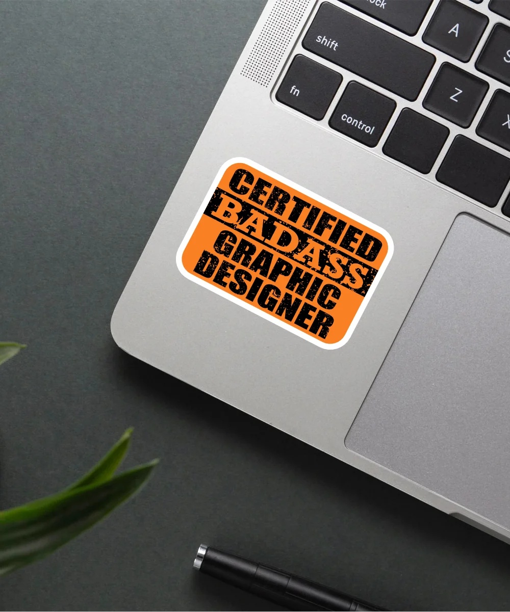 Certified BADASS vinyl sticker, waterproof durable collectible sticker for laptop, phone, bottle, bike, notebook, helmet, and accessories.