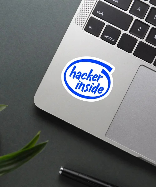 Hacker Inside Sticker vinyl sticker, waterproof durable collectible sticker for laptop, phone, bottle, bike, notebook, helmet, and accessories.