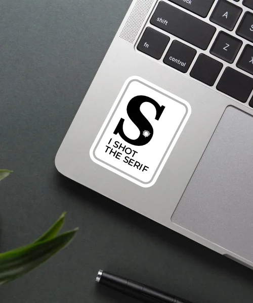 I Shot The Serif vinyl sticker, waterproof durable collectible sticker for laptop, phone, bottle, bike, notebook, helmet, and accessories.