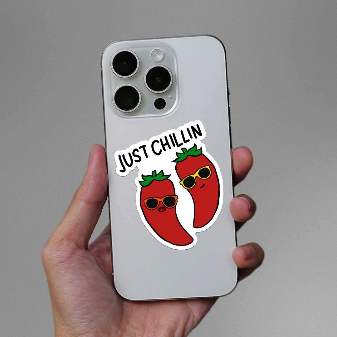 Just Chillin Sticker vinyl sticker, waterproof durable collectible sticker for laptop, phone, bottle, bike, notebook, helmet, and accessories.