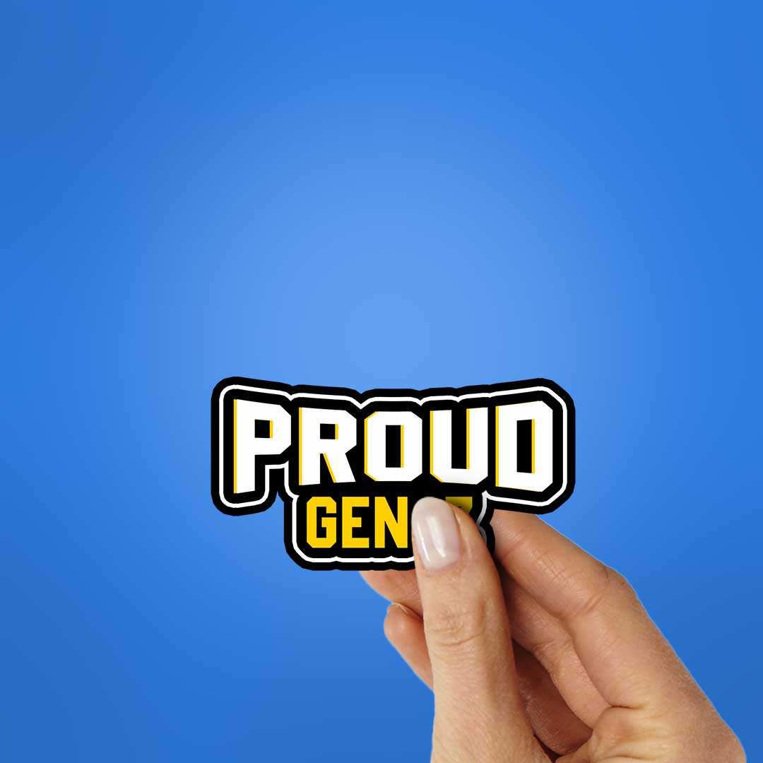 Proud GenZ Sticker vinyl sticker, waterproof durable collectible sticker for laptop, phone, bottle, bike, notebook, helmet, and accessories.