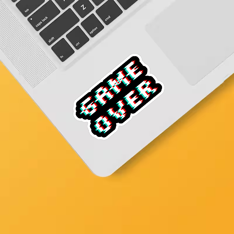 Retro Glitched Game Over Sticker vinyl sticker, waterproof durable collectible sticker for laptop, phone, bottle, bike, notebook, helmet, and accessories.