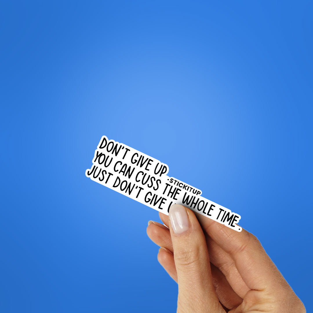 Dont Give Up Sticker vinyl sticker, waterproof durable collectible sticker for laptop, phone, bottle, bike, notebook, helmet, and accessories.