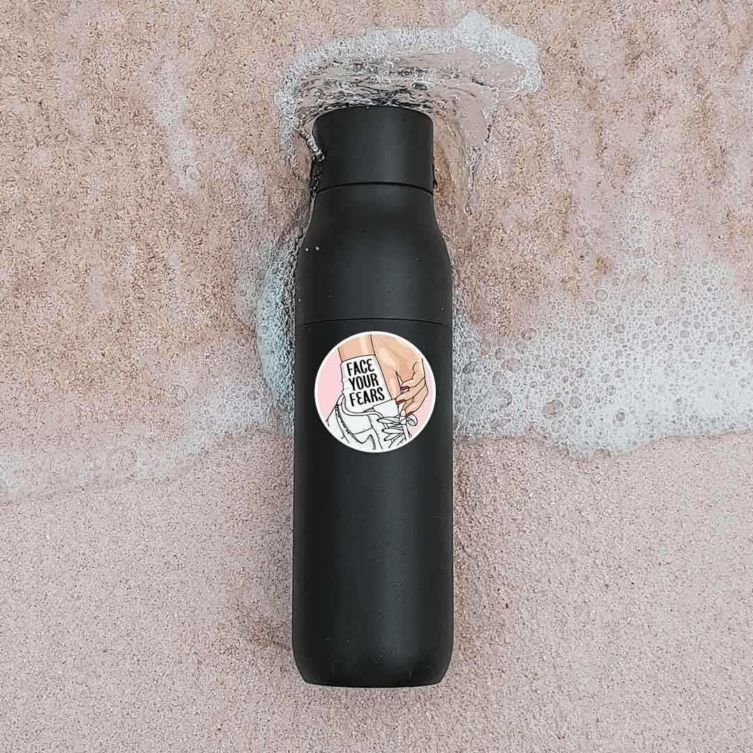 Face Your Fears Sticker vinyl sticker, waterproof durable collectible sticker for laptop, phone, bottle, bike, notebook, helmet, and accessories.