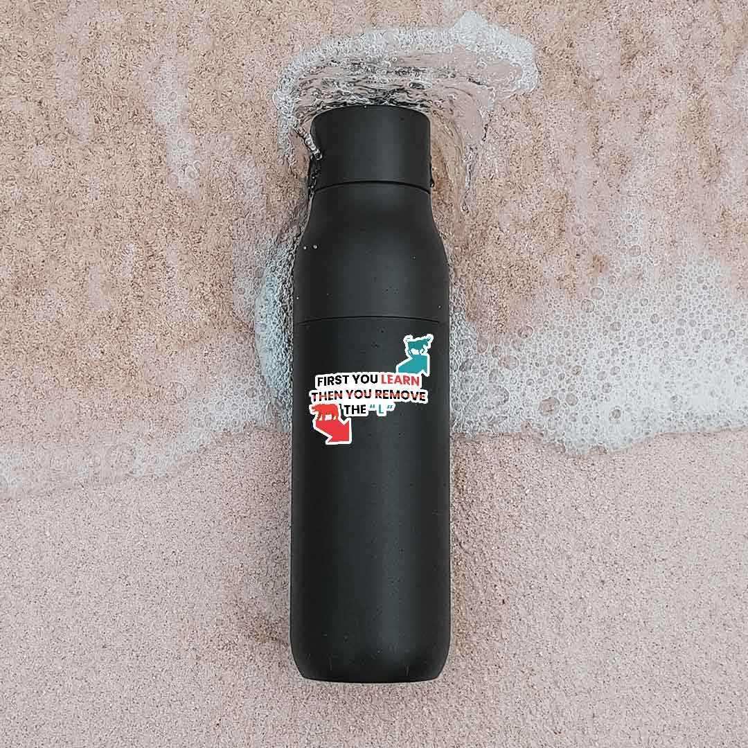 First You Learn Sticker vinyl sticker, waterproof durable collectible sticker for laptop, phone, bottle, bike, notebook, helmet, and accessories.