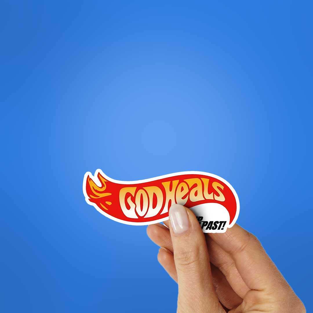God Heals Sticker vinyl sticker, waterproof durable collectible sticker for laptop, phone, bottle, bike, notebook, helmet, and accessories.