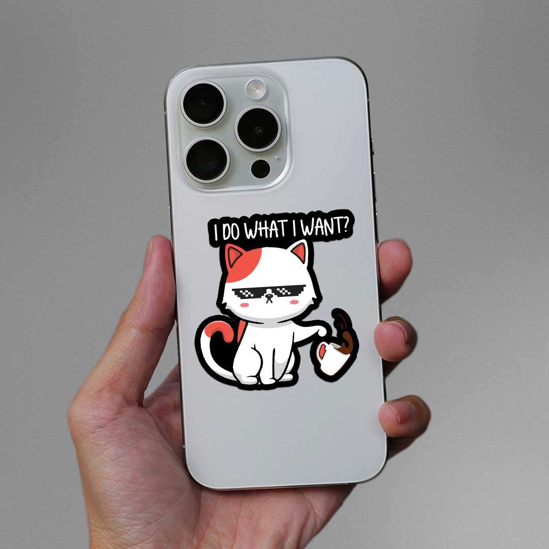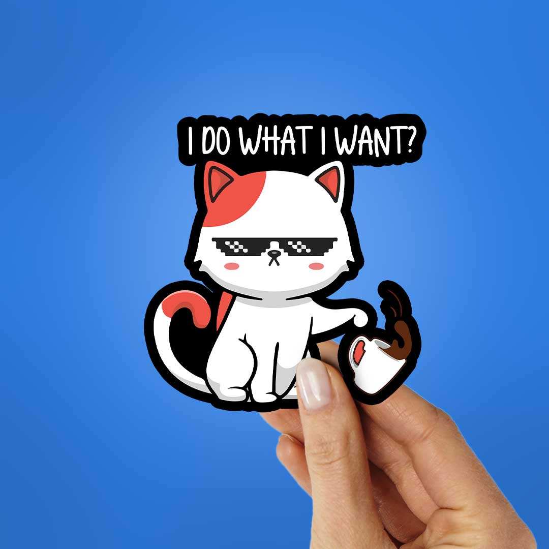 I Do What I Want Sticker vinyl sticker, waterproof durable collectible sticker for laptop, phone, bottle, bike, notebook, helmet, and accessories.