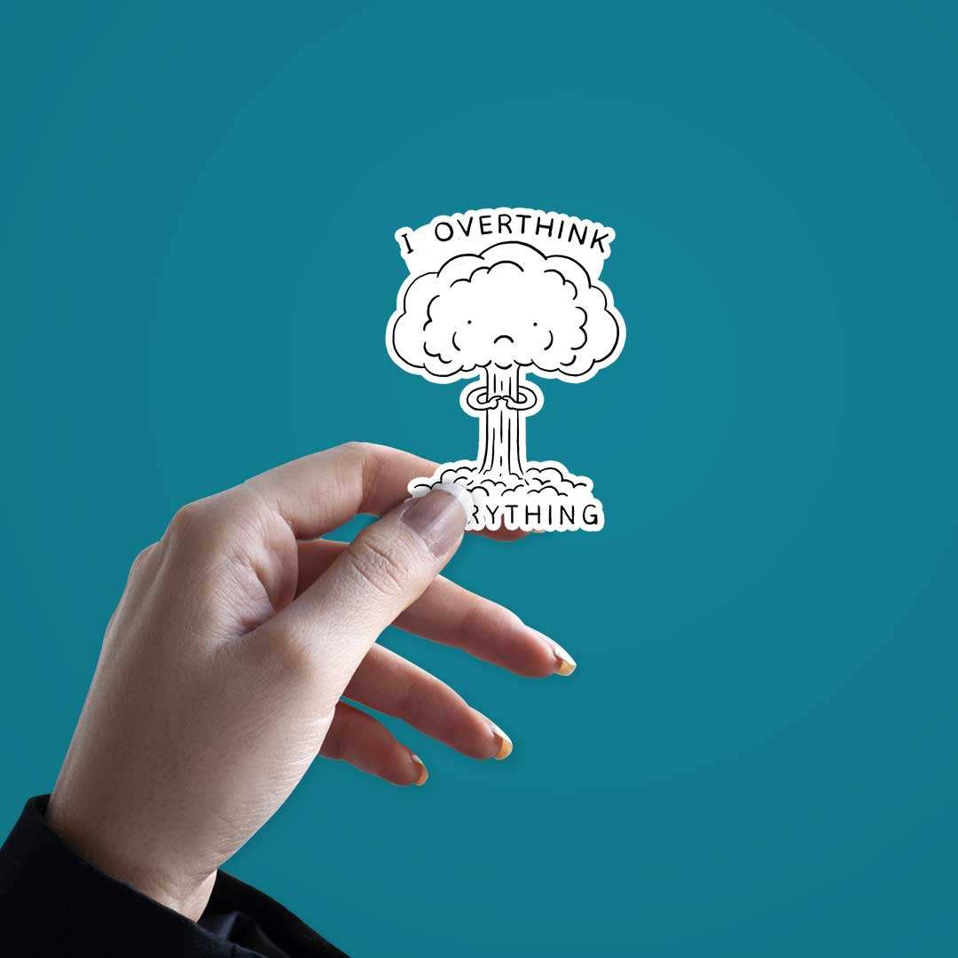 I Overthink Everything Sticker vinyl sticker, waterproof durable collectible sticker for laptop, phone, bottle, bike, notebook, helmet, and accessories.
