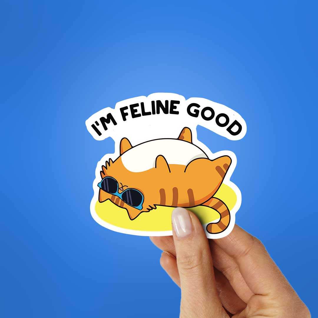 Im Feeling Good Sticker vinyl sticker, waterproof durable collectible sticker for laptop, phone, bottle, bike, notebook, helmet, and accessories.
