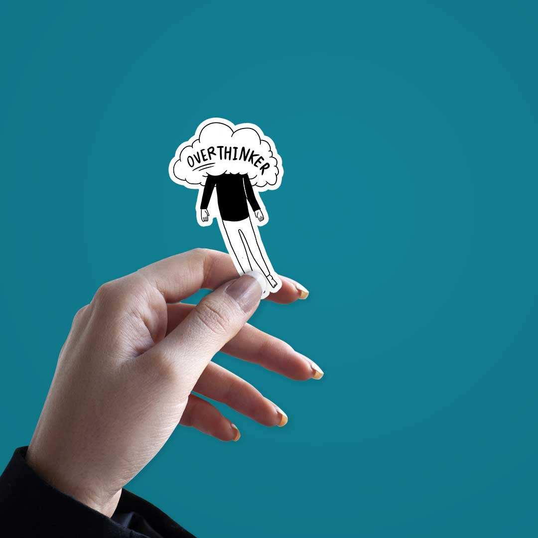 Over Thinker Sticker vinyl sticker, waterproof durable collectible sticker for laptop, phone, bottle, bike, notebook, helmet, and accessories.