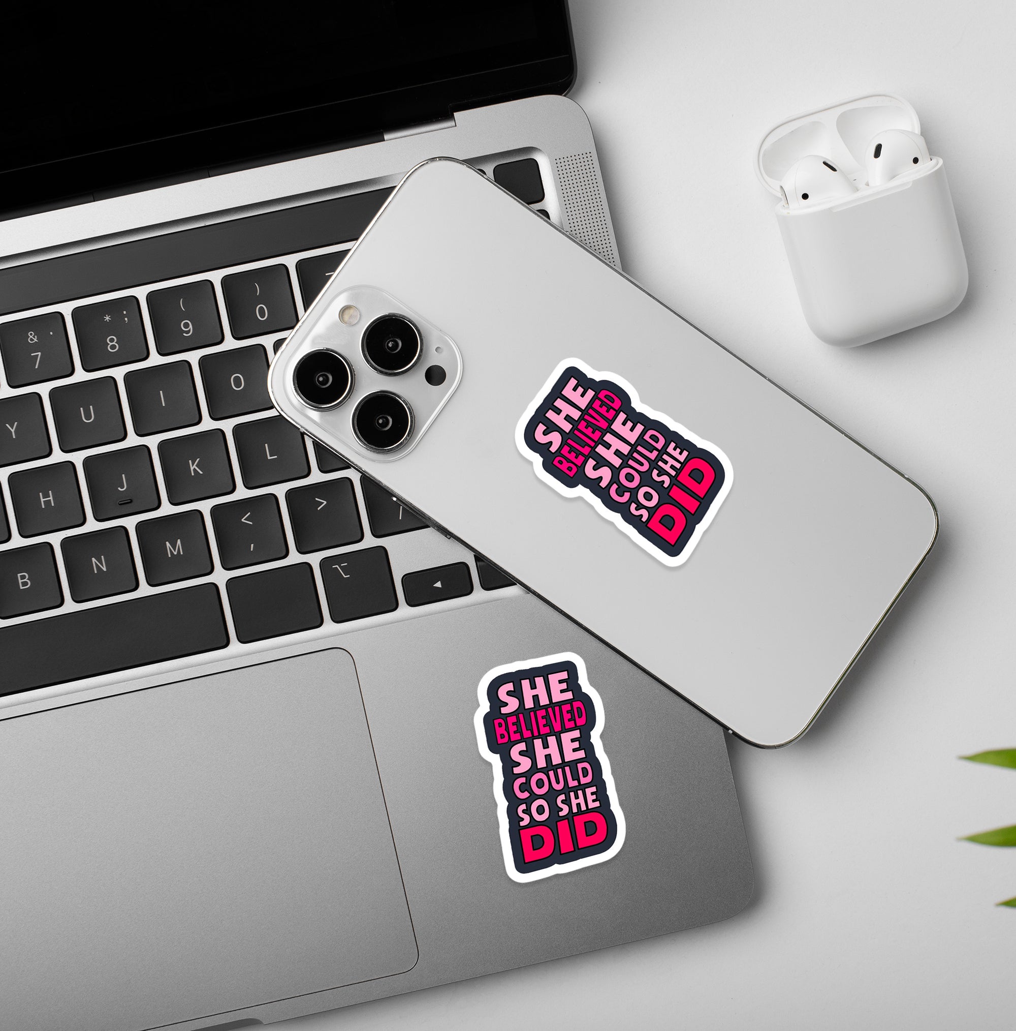 She Believed Laptop Mobile Sticker vinyl sticker, waterproof durable collectible sticker for laptop, phone, bottle, bike, notebook, helmet, and accessories.