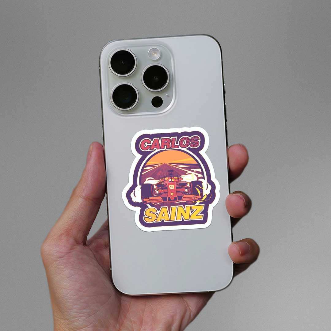 Carlos Sainz Sticker vinyl sticker, waterproof durable collectible sticker for laptop, phone, bottle, bike, notebook, helmet, and accessories.