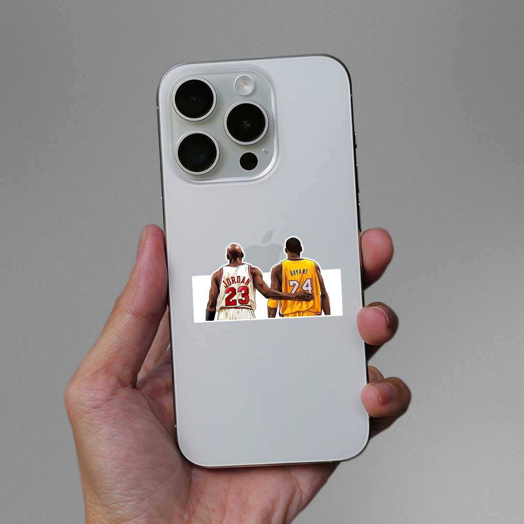 Michael Jordan Kobe Bryant Sticker vinyl sticker, waterproof durable collectible sticker for laptop, phone, bottle, bike, notebook, helmet, and accessories.