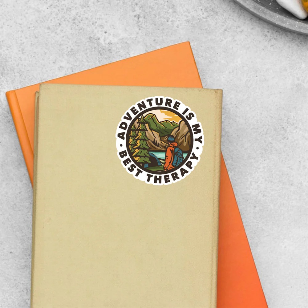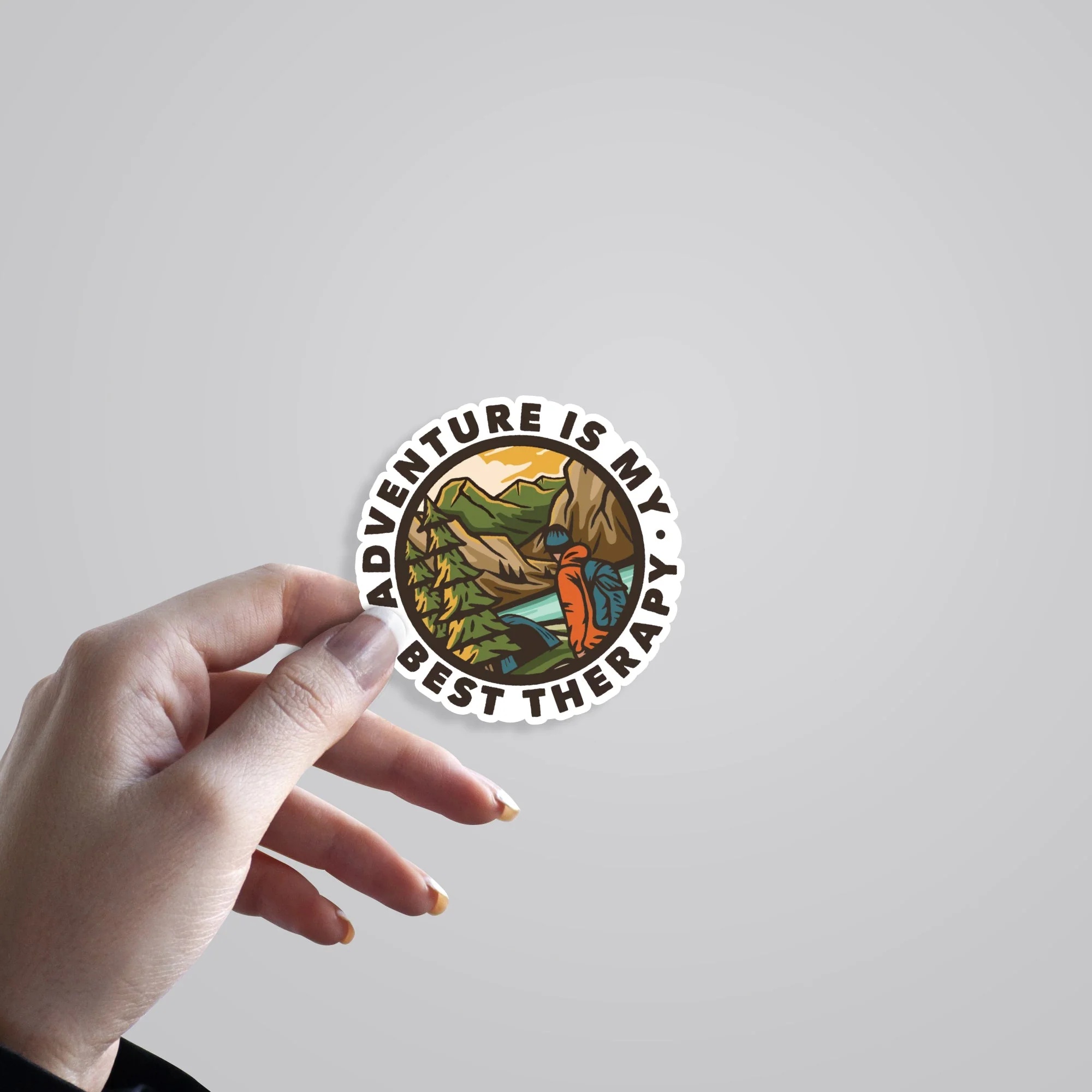 Adventure Is My Best Therapy Travels Stickers vinyl sticker, waterproof durable collectible sticker for laptop, phone, bottle, bike, notebook, helmet, and accessories.