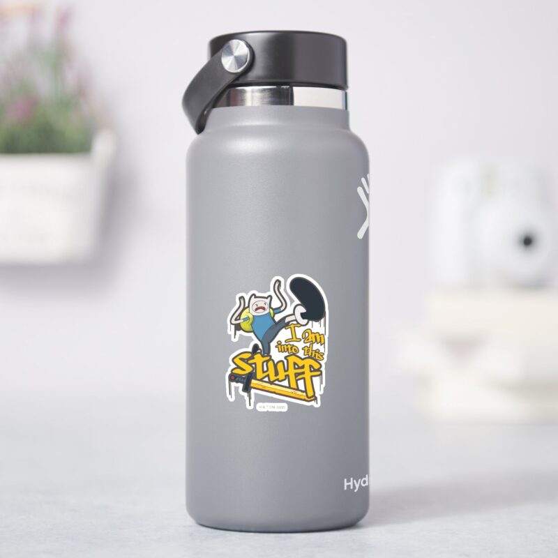 Adventure Time Finn I Am Into This Stuff Sticker vinyl sticker, waterproof durable collectible sticker for laptop, phone, bottle, bike, notebook, helmet, and accessories.