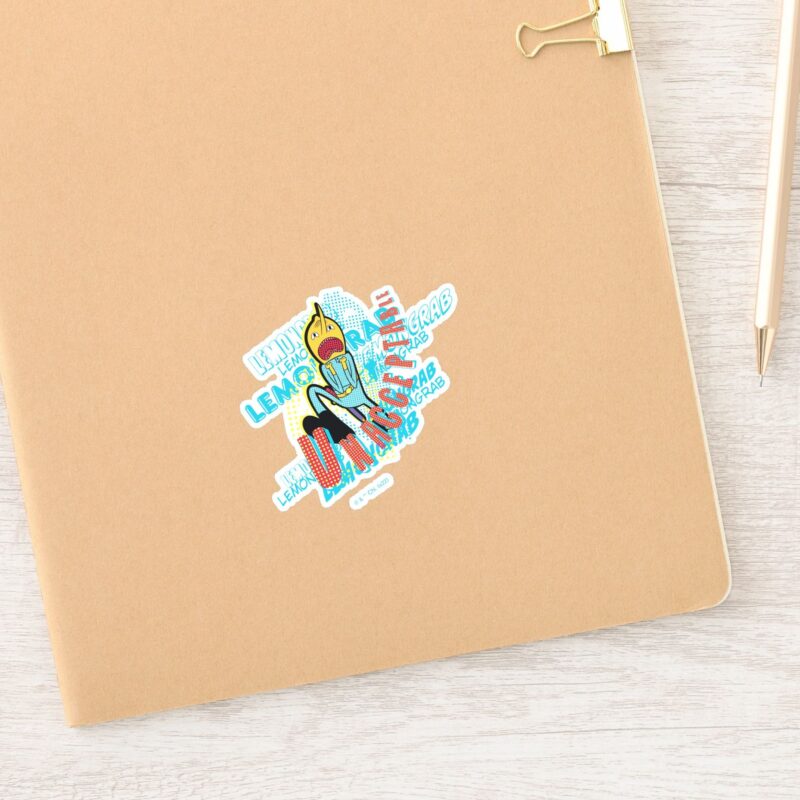 Adventure Time Lemon Grab UNACCEPTABLE Sticker vinyl sticker, waterproof durable collectible sticker for laptop, phone, bottle, bike, notebook, helmet, and accessories.