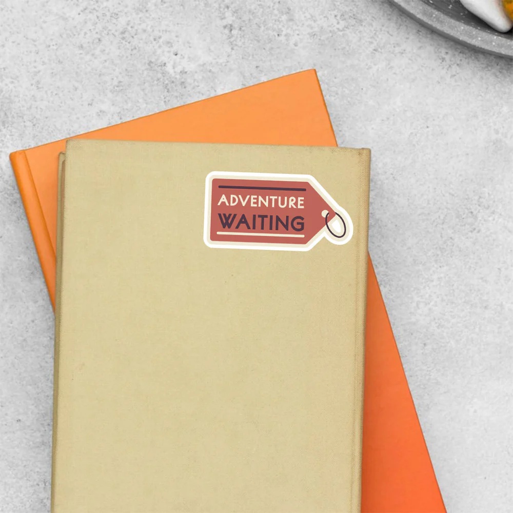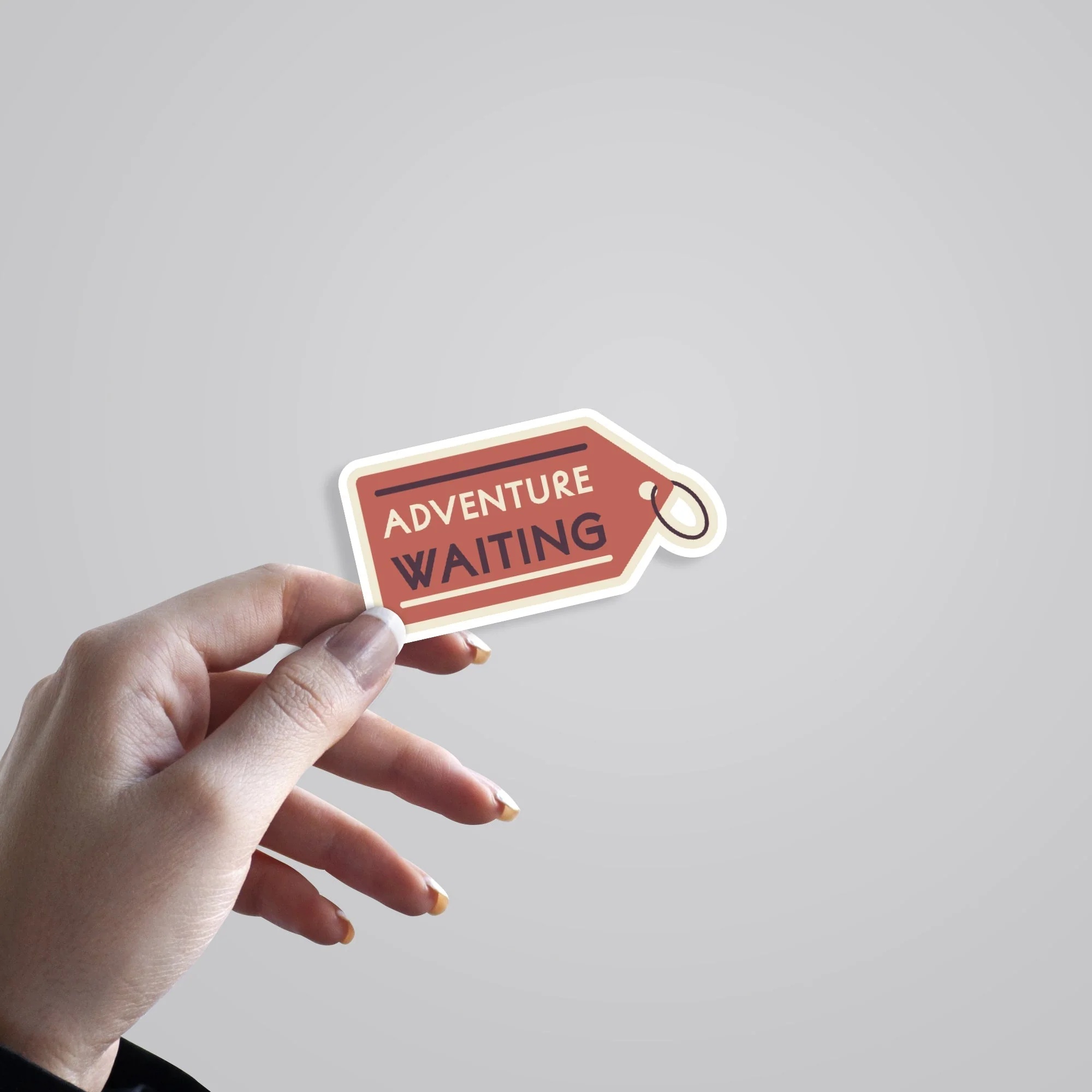 Adventure Waiting Travels Stickers vinyl sticker, waterproof durable collectible sticker for laptop, phone, bottle, bike, notebook, helmet, and accessories.