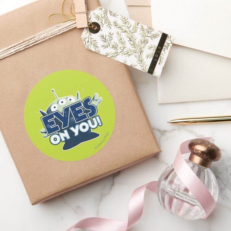 Alien Eyes On You Classic Round Sticker vinyl sticker, waterproof durable collectible sticker for laptop, phone, bottle, bike, notebook, helmet, and accessories.