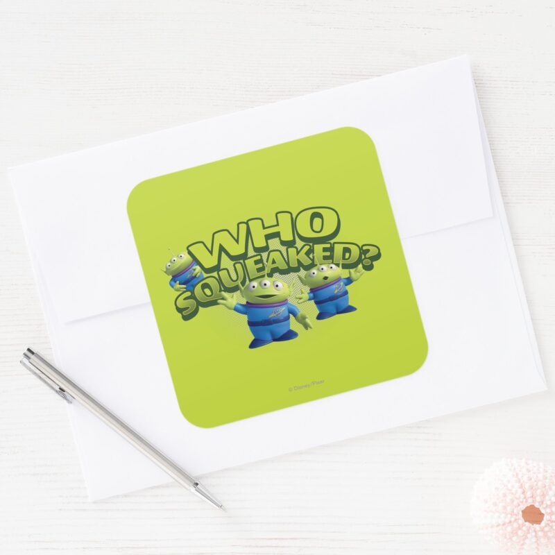 Aliens Who Squeaked Square Sticker vinyl sticker, waterproof durable collectible sticker for laptop, phone, bottle, bike, notebook, helmet, and accessories.