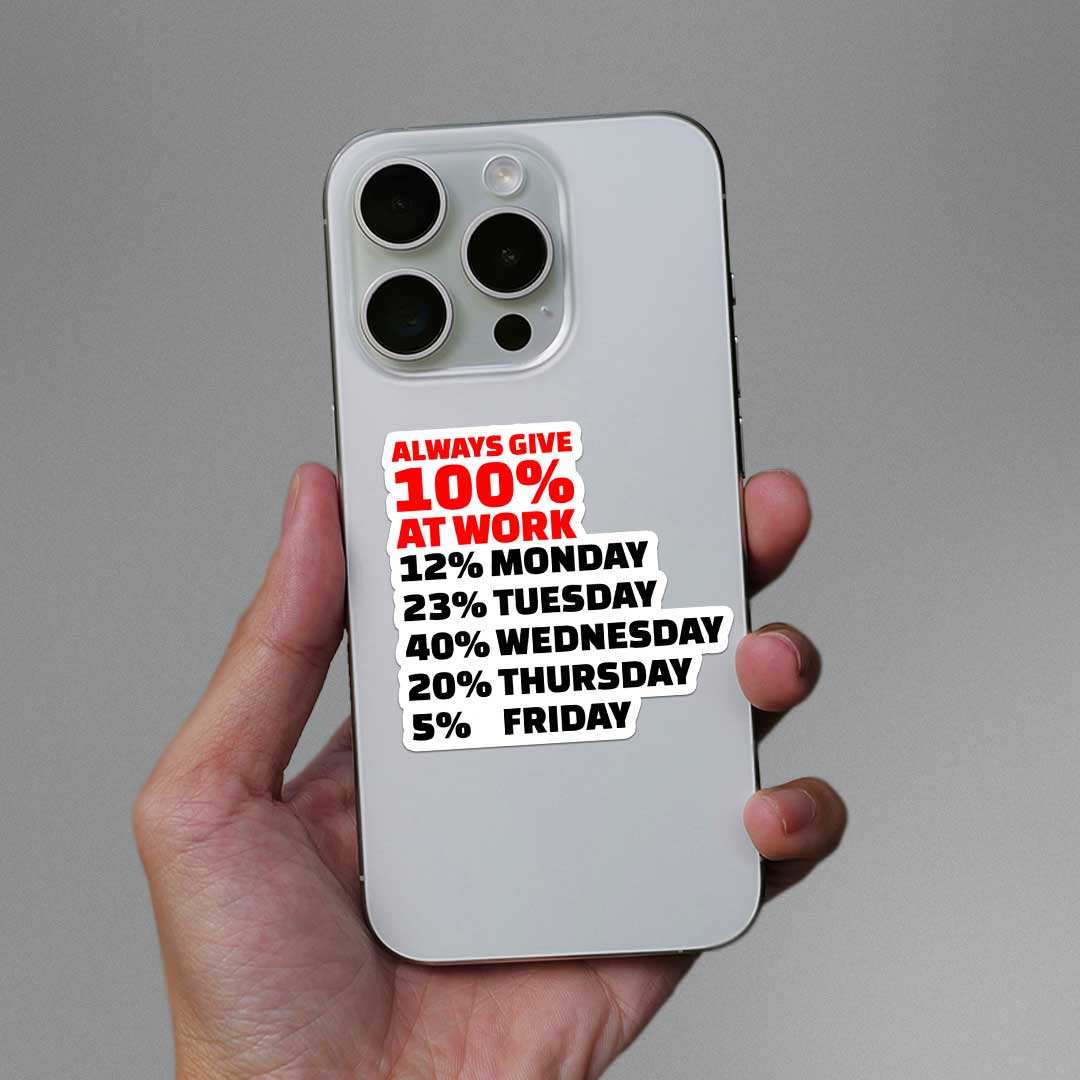 Always Give 100 At Work Sticker vinyl sticker, waterproof durable collectible sticker for laptop, phone, bottle, bike, notebook, helmet, and accessories.