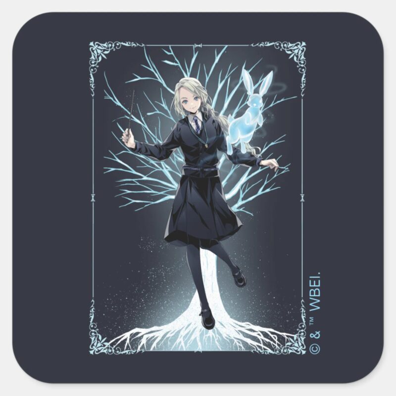 Anime Luna Lovegoods Rabbit Patronus Square Sticker vinyl sticker, waterproof durable collectible sticker for laptop, phone, bottle, bike, notebook, helmet, and accessories.