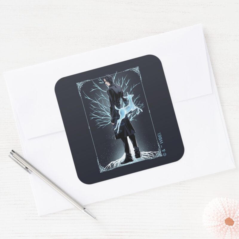 Anime Severus Snapes Doe Patronus Square Sticker vinyl sticker, waterproof durable collectible sticker for laptop, phone, bottle, bike, notebook, helmet, and accessories.