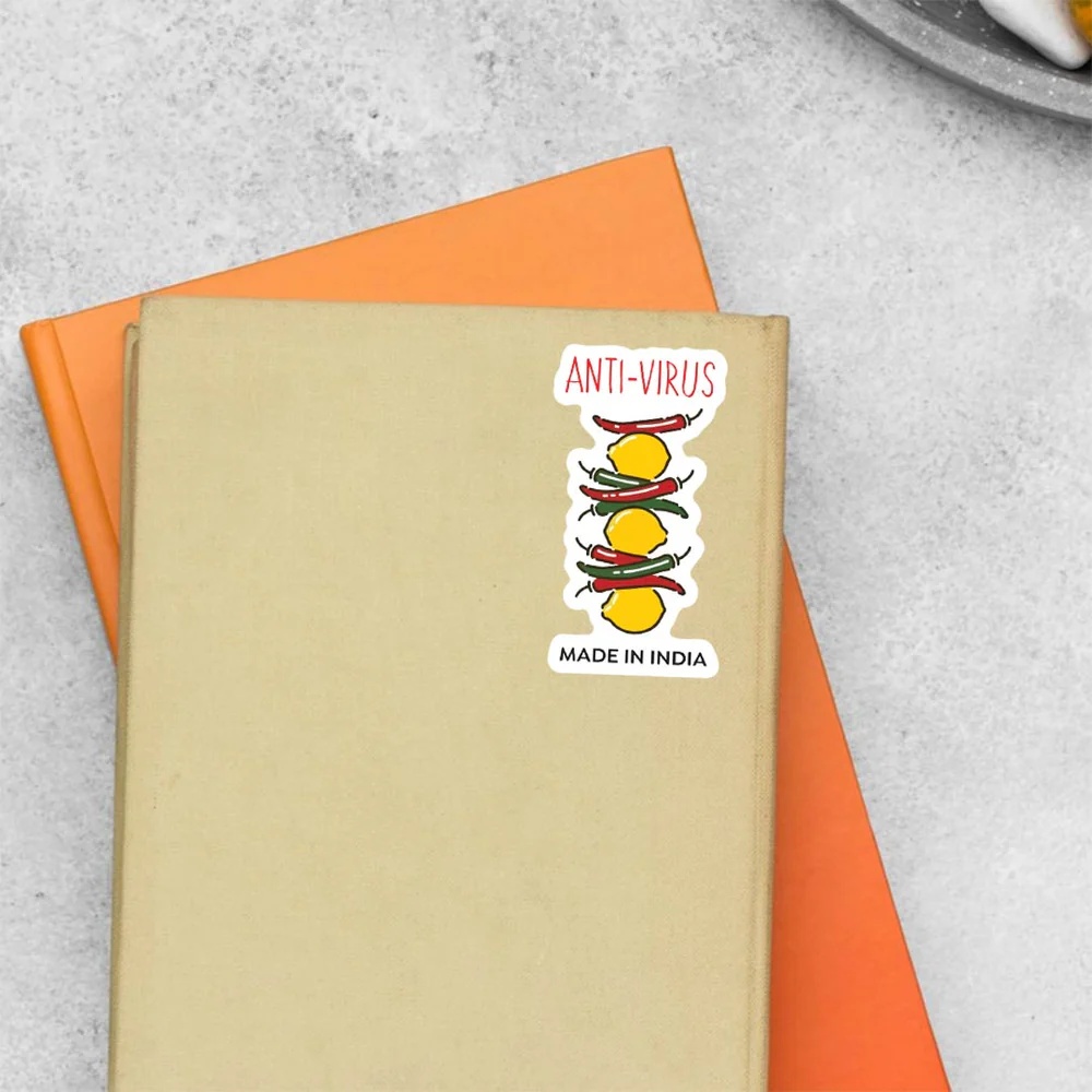 Anti Virus Made In India Witty Stickers vinyl sticker, waterproof durable collectible sticker for laptop, phone, bottle, bike, notebook, helmet, and accessories.