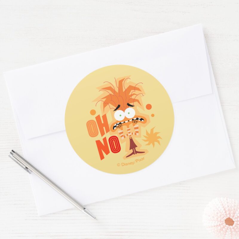 Anxiety Oh No Classic Round Sticker vinyl sticker, waterproof durable collectible sticker for laptop, phone, bottle, bike, notebook, helmet, and accessories.