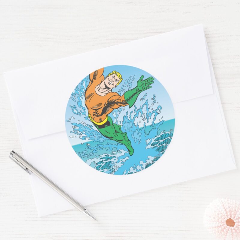 Aquaman Leaps In Wave Classic Round Sticker