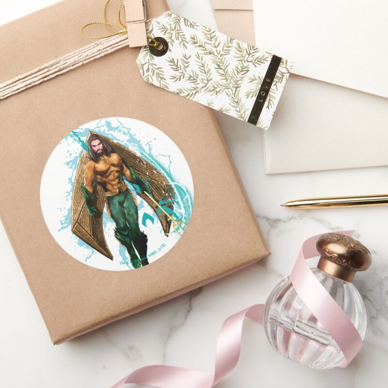 Aquaman Prince Orin With Aquaman Logo Classic Round Sticker vinyl sticker, waterproof durable collectible sticker for laptop, phone, bottle, bike, notebook, helmet, and accessories.