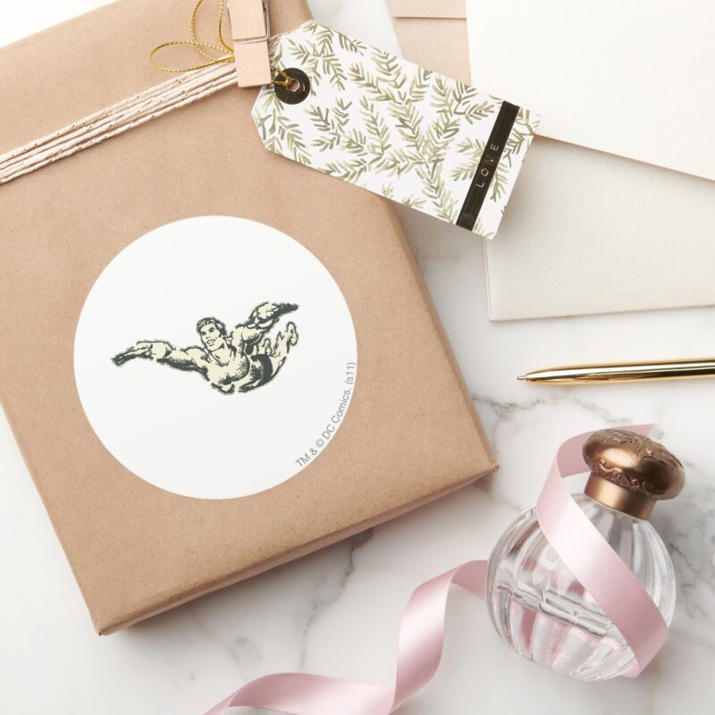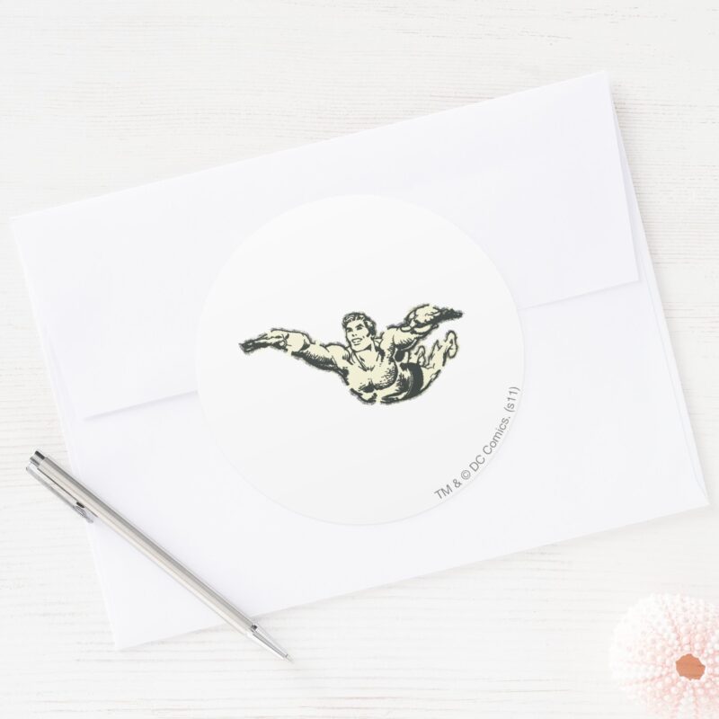 Aquaman Soars BW Classic Round Sticker vinyl sticker, waterproof durable collectible sticker for laptop, phone, bottle, bike, notebook, helmet, and accessories.