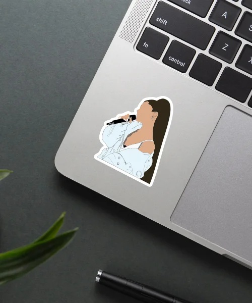 Ariana Grande Singing Sticker vinyl sticker, waterproof durable collectible sticker for laptop, phone, bottle, bike, notebook, helmet, and accessories.