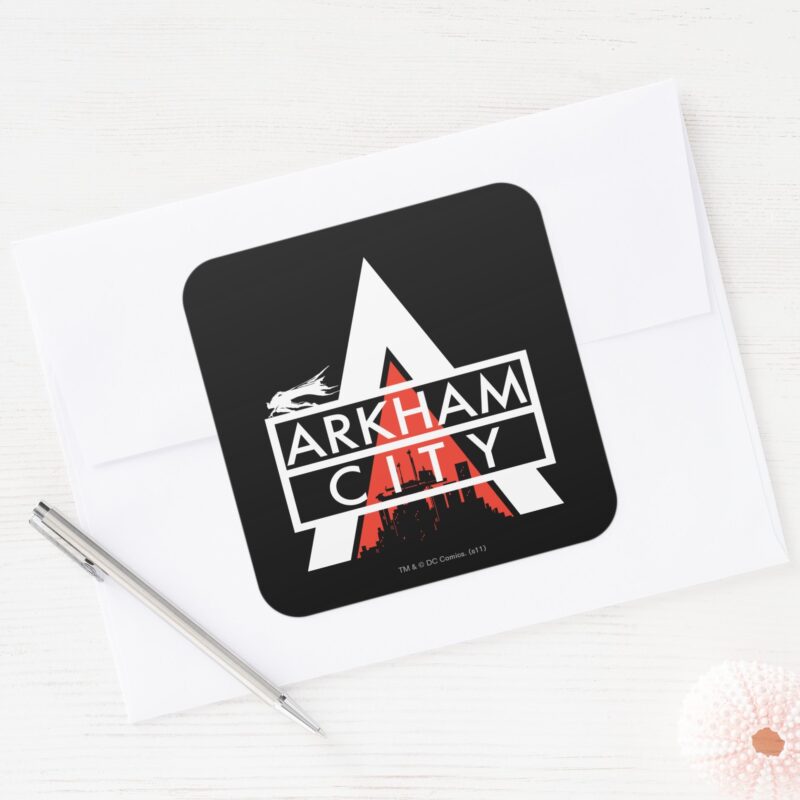 Arkham City Logo White Square Sticker vinyl sticker, waterproof durable collectible sticker for laptop, phone, bottle, bike, notebook, helmet, and accessories.