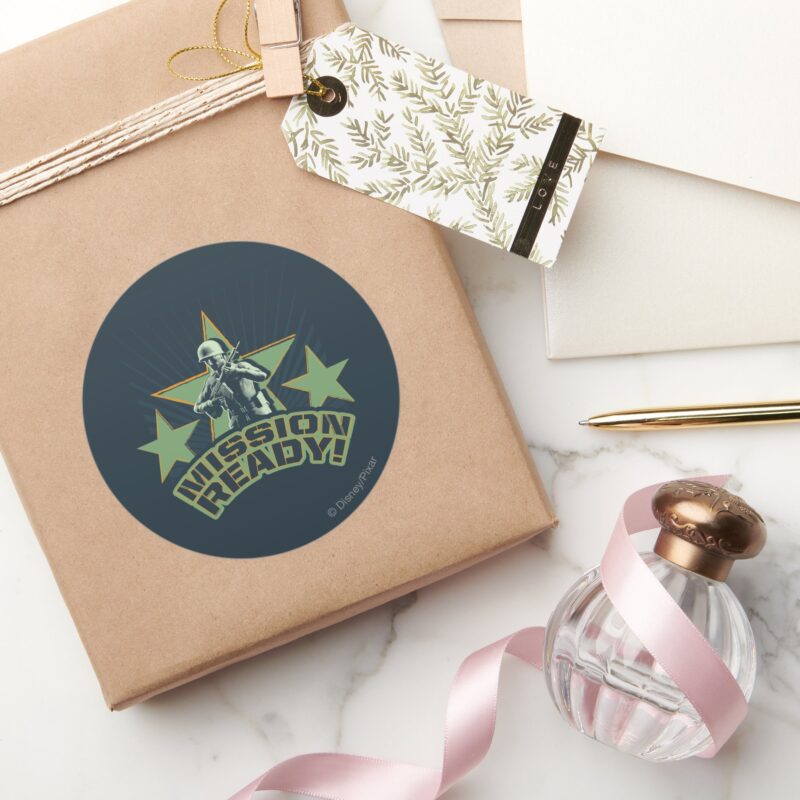 Army Sarge Mission Ready Classic Round Sticker vinyl sticker, waterproof durable collectible sticker for laptop, phone, bottle, bike, notebook, helmet, and accessories.