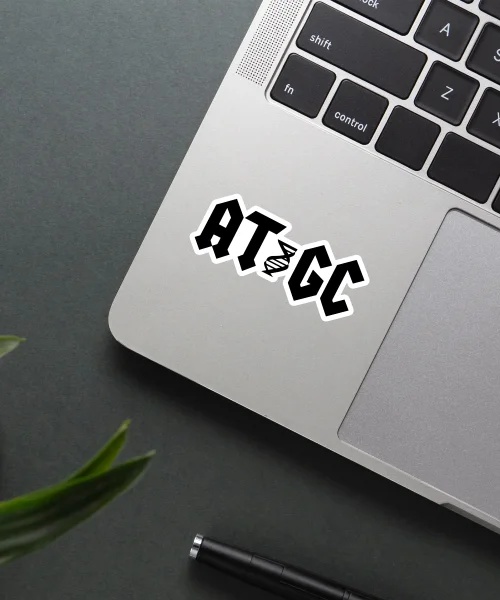 AT GC Funny DNA Molecular Biology vinyl sticker, waterproof durable collectible sticker for laptop, phone, bottle, bike, notebook, helmet, and accessories.