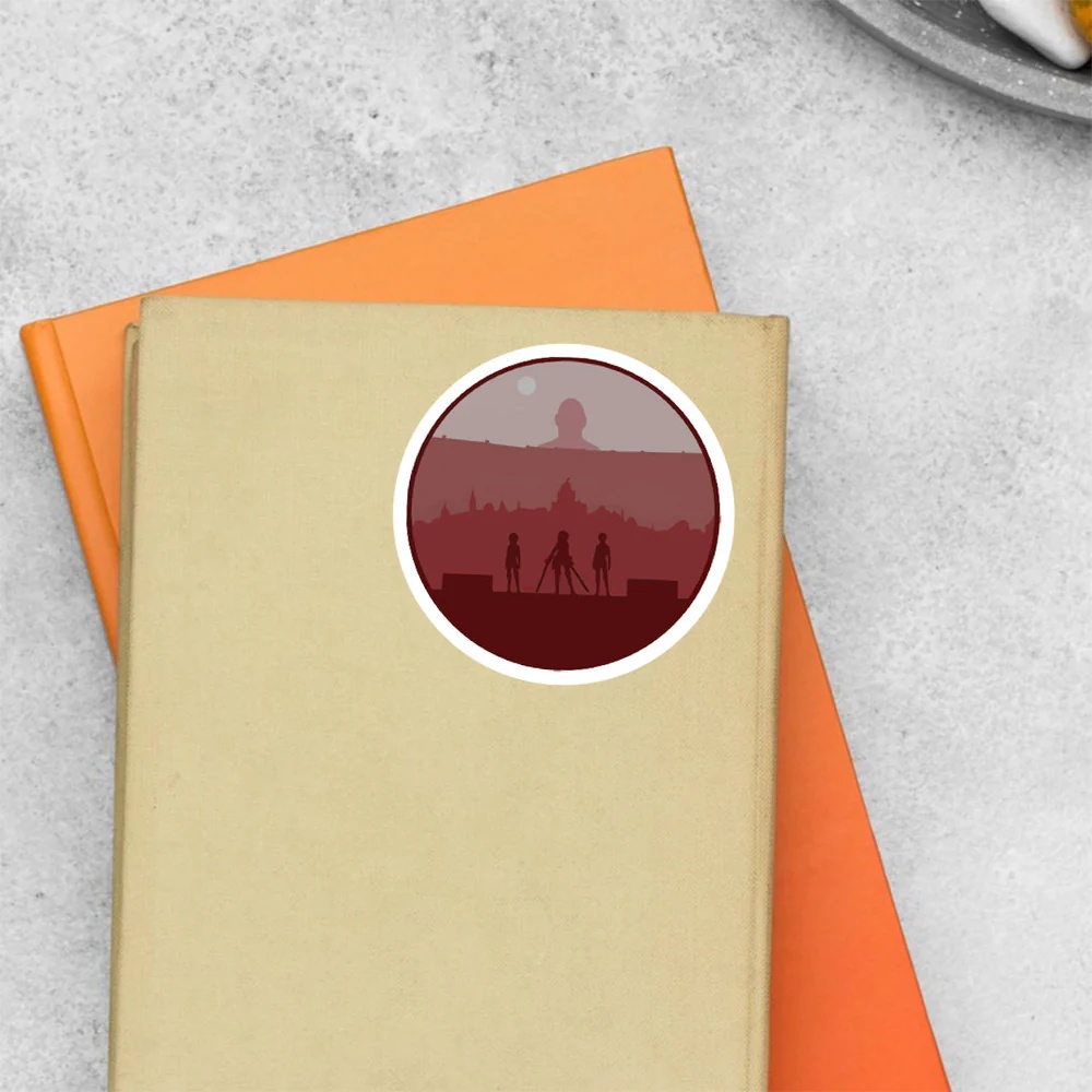 Attack On Titan In Red Anime Stickers vinyl sticker, waterproof durable collectible sticker for laptop, phone, bottle, bike, notebook, helmet, and accessories.