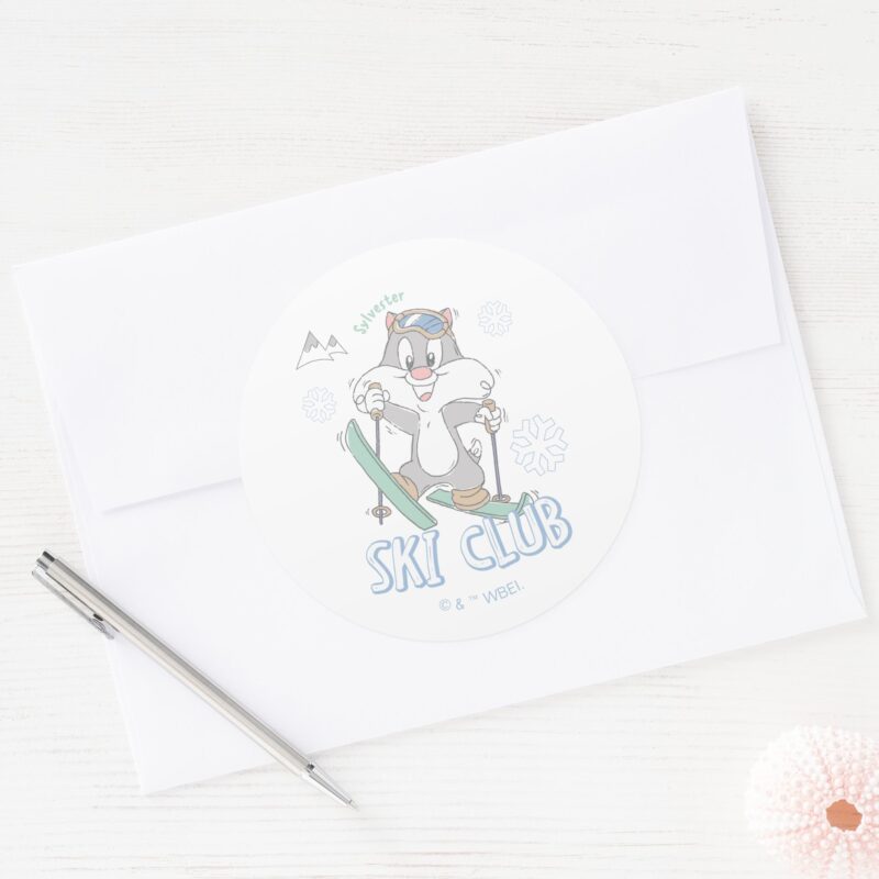 Baby SYLVESTER™ Ski Club Classic Round Sticker vinyl sticker, waterproof durable collectible sticker for laptop, phone, bottle, bike, notebook, helmet, and accessories.