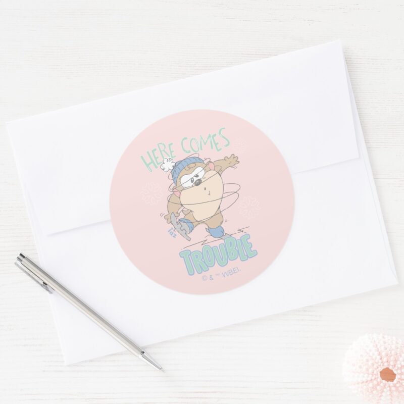 Baby TAZ™ Winter Ice Skating Classic Round Sticker vinyl sticker, waterproof durable collectible sticker for laptop, phone, bottle, bike, notebook, helmet, and accessories.