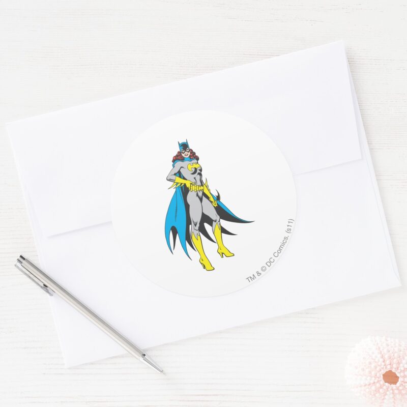Batgirl Poses Classic Round Sticker vinyl sticker, waterproof durable collectible sticker for laptop, phone, bottle, bike, notebook, helmet, and accessories.