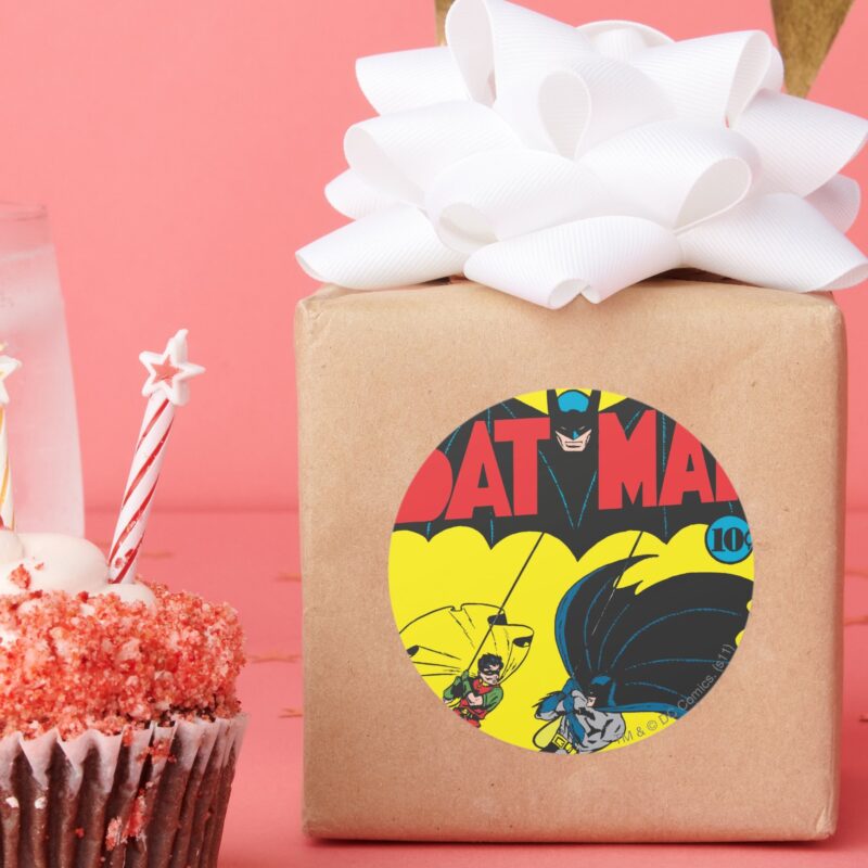 Batman 1 Comic Classic Round Sticker vinyl sticker, waterproof durable collectible sticker for laptop, phone, bottle, bike, notebook, helmet, and accessories.
