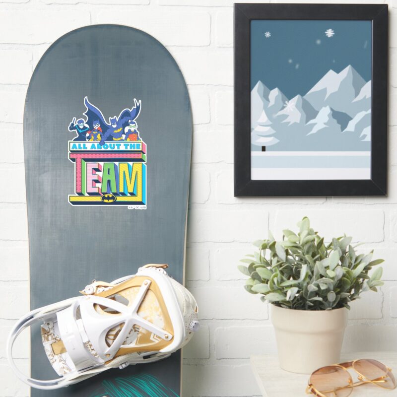 Batman All About The Team Sticker vinyl sticker, waterproof durable collectible sticker for laptop, phone, bottle, bike, notebook, helmet, and accessories.