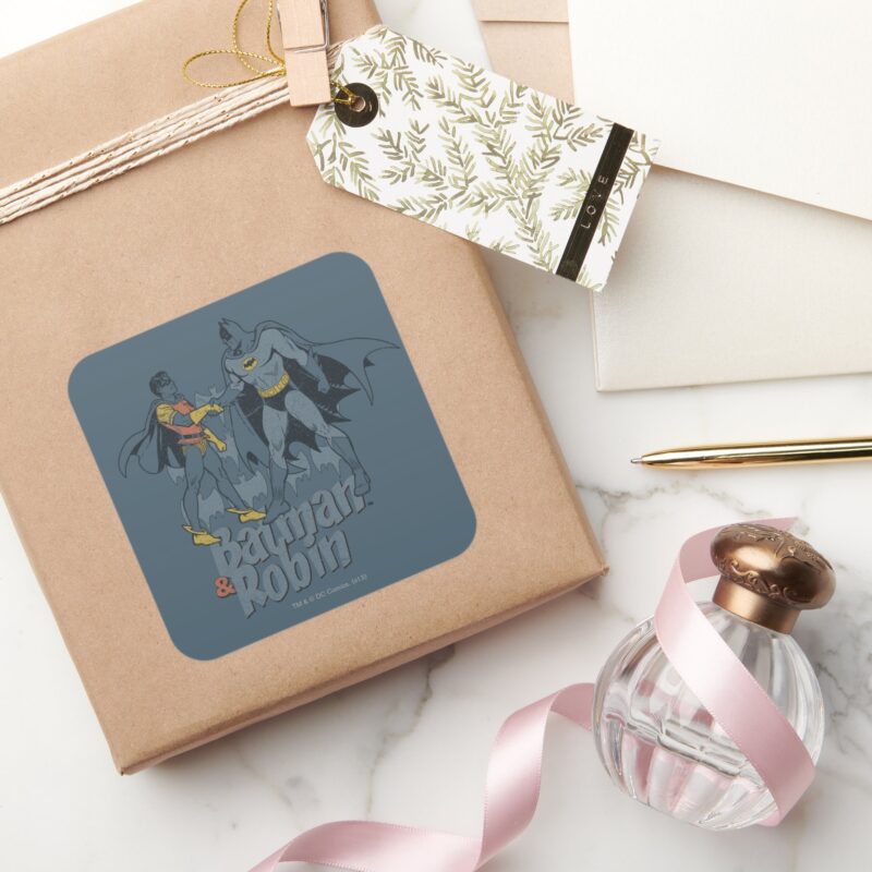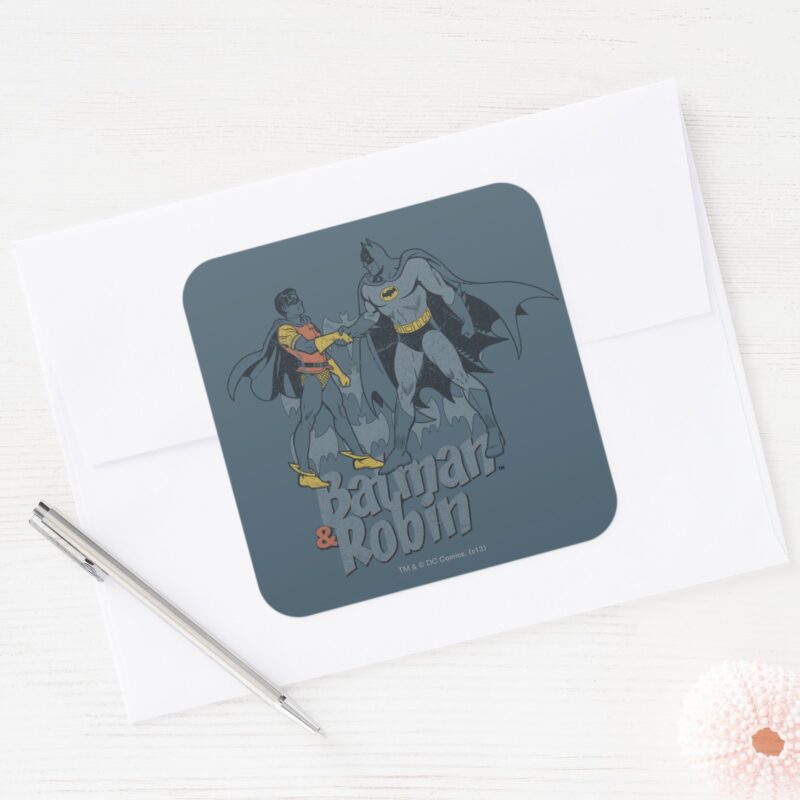 Batman And Robin Distressed Graphic Square Sticker vinyl sticker, waterproof durable collectible sticker for laptop, phone, bottle, bike, notebook, helmet, and accessories.
